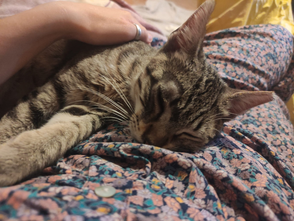 Apareció de repente en una de nuestras colonias con el ojo derecho destrozado (ya lo tiene curado). Estaba muy delgado, lleno de arañazos y no paraba de maullar. Pero se dejaba acariciar y ronroneaba todo el rato, por ello creemos que ha sido abandonado. Es una gatito muy bueno, muy cariñoso y solo quiere compañía :´(